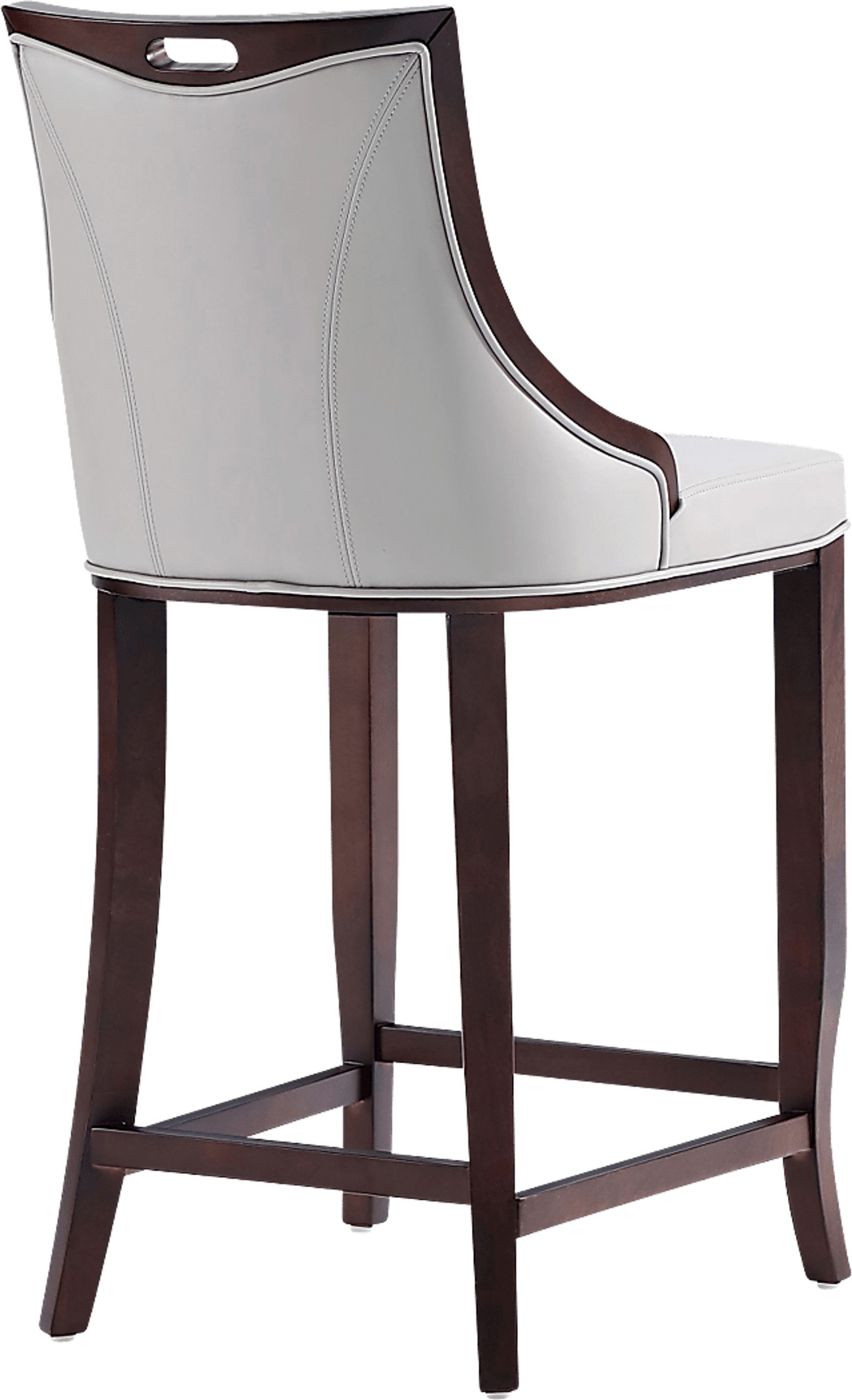 Subtle design that is boldly executed. Sleek and graceful, the Bramblewoody light gray barstool is all about refined curves. Featuring a subtle hourglass silhouette, the rich walnut-finished wood frame is simple yet classic, taking on an eye-catching, tailored look thats utterly sophisticated.