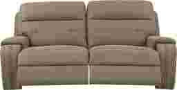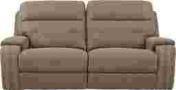 Cozy, indulgent seating for two, the Brampton Place power reclining sofa offers cushioned reclining comfort at the touch of a button. Upholstered in soft, breathable brown fabric, this casual contemporary sofa is accented with contrasting stitching detail. An included charging USB port on the reclining controls offers added convenience, while chaise style footrests keep you supported from head to toe. 100% Polyurethane.