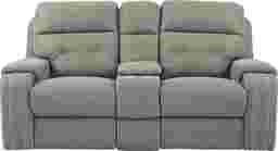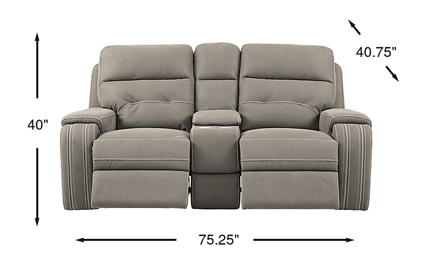 The ultimate command center, the Brampton Place power console loveseat offers premium comfort and incredible convenience in one stylish package. This casual contemporary loveseat is upholstered in soft, breathable mushroom fabric accented with contrasting stitching detail. Dual chaise style power reclining footrests keep you comfortable and supported from head to toe. The useful center console features a lift-top storage compartment and dual cupholders to keep everything you need within arm's reach. 100% Polyester.