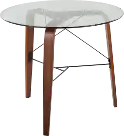 Eclectic and ultra unique, the Branam round dinette table will bring cosmopolitan style to your dining area. With its sturdy construction, sleek curves and retro flair, the bent walnut wood is complimented by a circular glass top. Customer assembly is required.