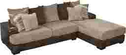 The Brannen sectional combines style, comfort, and a timeless versatility to create a sectional big on coziness. Woven beige seat cushions are reversible so you can flip them for even wear over the years. The smooth brown base adds a chic look, creating a dashing combination of dark and light that only adds to the casual warmth. Whether you're lounging on the chaise or relaxing on one of the other seats, you're greeted with a comfortable, cozy place to sit. A mix of coordinating solid and patterned scatterback pillows add the finishing touch. 100% polyester.