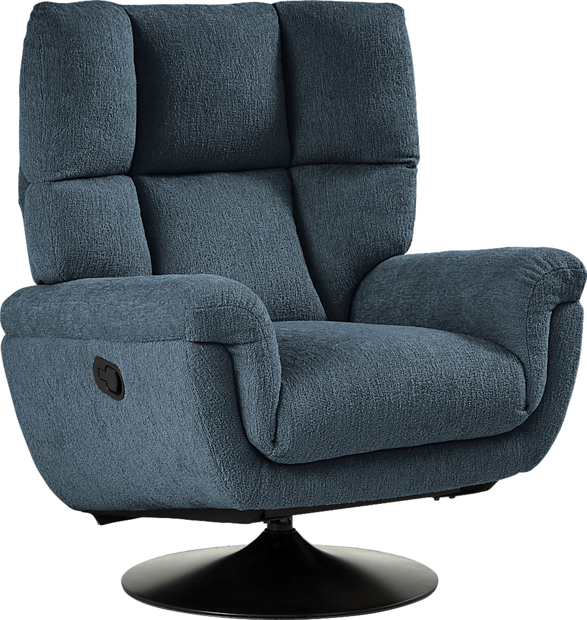 As charming and inviting as it is functional, the Braselton swivel recliner makes it easy to add a pop of style and an exceptionally comfortable seat to your room. This transitional pushback recliner can be set at any angle you choose for the ideal comfort setting, while the ratcheting headrest can be adjusted as well for extra support. The squared, chambered upholstery in blue creates a relaxed and inviting look, and surrounds users in plush comfort on all sides. A swivel function gives the recliner a full 360 degrees of motion. Upholstery: 100% Polyester