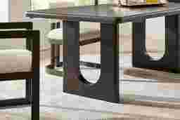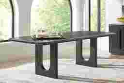 The sculptural double pedestal base on this table offers both aesthetic and practical advantages. Architecturally, it creates a sense of "visual lightness," which helps a room feel more open and less cluttered. Practically, a pedestal design maximizes legroom and seating flexibility, as there are no corner legs to obstruct chairs or guests’ knees, allowing you to easily adjust seating arrangements as needed.