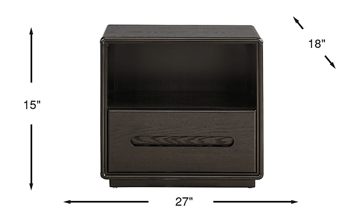 This nightstand is an excellent choice for urban living where maximizing visual space is key. Its low-profile height and 27-inch width offer a significant surface area without overwhelming a small room. The design features a unique finger-pull alcove instead of protruding hardware, maintaining a sleek, space-saving silhouette that won't snag in tight quarters.