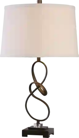 Yes, this lamp is particularly well-suited for urban living or homes where surface space is limited. With a total footprint of 16 inches, it fits comfortably on narrow console tables or compact nightstands. Furthermore, the "ribbon" design of the steel base provides visual transparency, allowing the piece to make a bold architectural statement without making a smaller room feel crowded or "heavy."