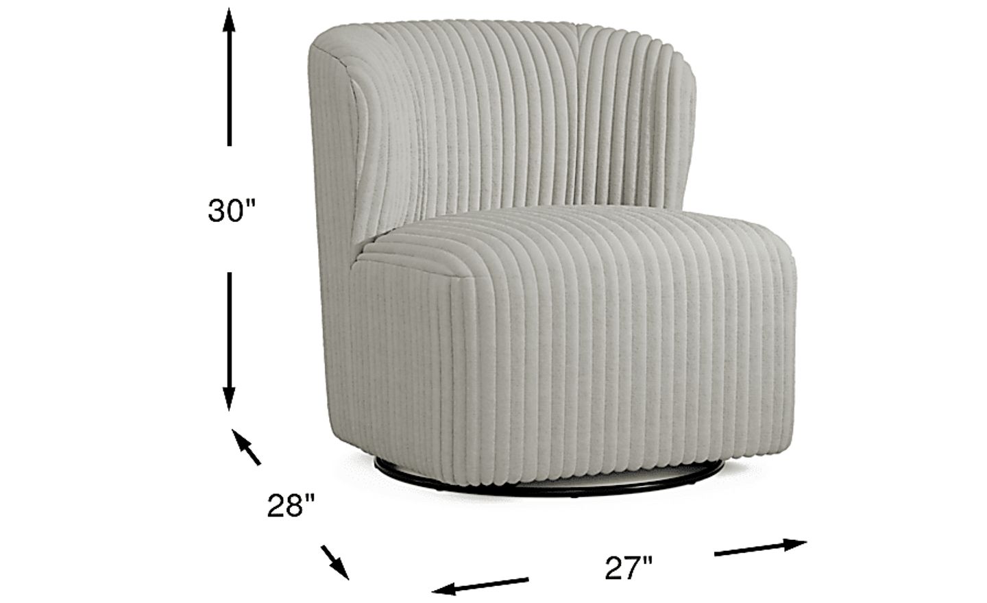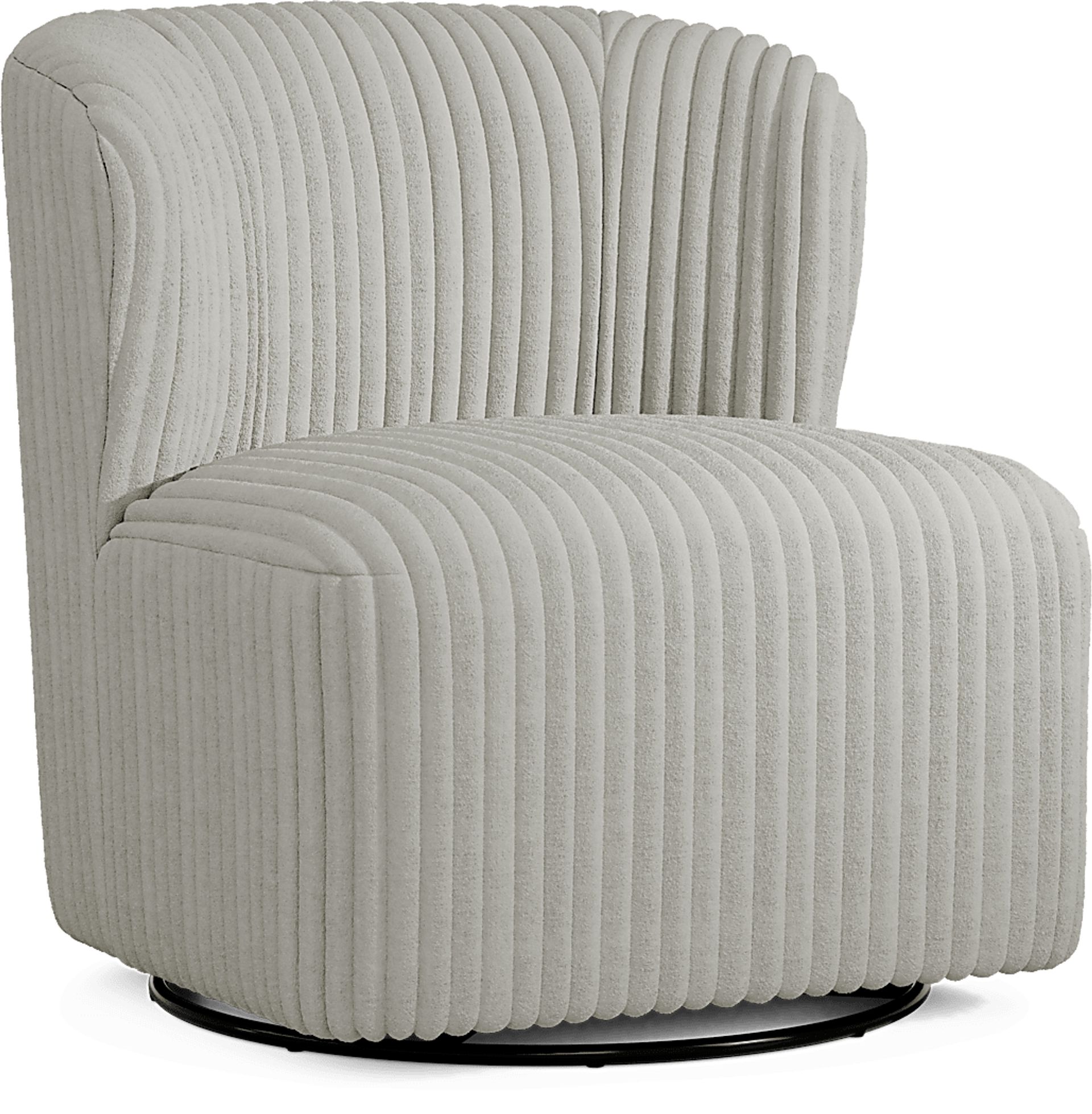 Where fashion-forward design meets everyday comfort, the Breigh swivel chair turns heads and elevates the look of your favorite spaces. With a sculptural silhouette and soft channels wrapped in gray knitted fabric, this piece blends soothing texture with modern form for a look that's as inviting as it is refined. The smooth glider swivel base adds a gentle, fluid motion that's perfect for unwinding or simply enjoying every moment. Upholstery: 100% Polyester.