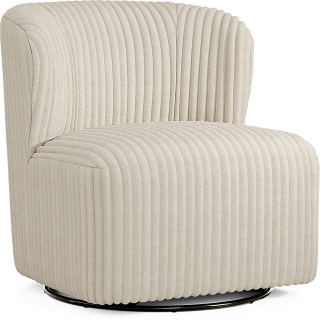 Where fashion-forward design meets everyday comfort, the Breigh swivel chair turns heads and elevates the look of your favorite spaces. With a sculptural silhouette and soft channels wrapped in ivory knitted fabric, this piece blends soothing texture with modern form for a look that's as inviting as it is refined. The smooth glider swivel base adds a gentle, fluid motion that's perfect for unwinding or simply enjoying every moment. Upholstery: 100% Polyester.