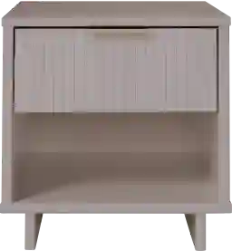 The unique vertical ribbed drawer front provides a sophisticated "modern glam" aesthetic. This textured detail adds visual depth and catches the light, making the light gray finish appear more dynamic. It serves as a stylish focal point that pairs exceptionally well with contemporary bedroom decor.