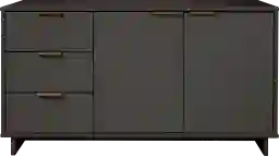 The Bremmer VII dark gray sideboard brings tasteful modern glam to your home. With its unique vertical ribbed drawer front, full extension and soft close drawers, it is not only a true beauty but also made with quality. Sleek metal horizontal handles with side mop base legs. Bremmer VII is what you have been looking for all this time. Customer assembly is required.
