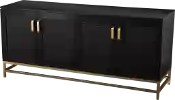 Your media space gets a sleek, sophisticated upgrade with this two-tone media console. Movies and books stay organized with spacious cabinets and adjustable shelves, while rattan accents give your space a hint of natural texture. Add this modern TV stand to your game room for a chic entertainment setup, or place in your family den to enjoy weekly movies nights with flair. Your design goes cool and contemporary with this four-door media cabinet. Customer assembly required.