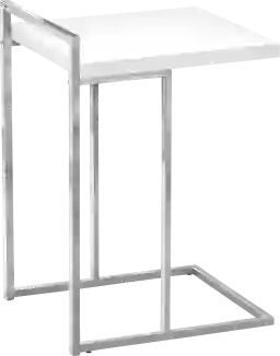 This Brenteresa Grove C-shaped accent table brings something extra to the table. The thick-panel tabletop in a glossy white finish offers a wider surface than most standard-size C tables. More surface space gives you more opportunities to use this end table. It can multitask in a living room or bedroom as a snack table when you watch TV, a nightstand to place a mobile phone while you sleep, or even a small laptop table when you need to work. The chrome metal base slides under a sofa or bed to bring items closer to you and offers another convenient feature: The top of the frame extends over the tabletop to create a handle that makes it easier to lift and move this portable side table. Customer assembly is required.