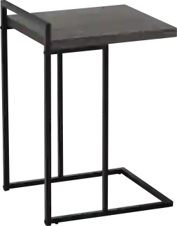 This Brenteresa Lane C-shaped accent table brings something extra to the table. The thick-panel tabletop in a gray finish offers a wider surface than most standard-size C tables. More surface space gives you more opportunities to use this end table. It can multitask in a living room or bedroom as a snack table when you watch TV, a nightstand to place a mobile phone while you sleep, or even a small laptop table when you need to work. The black metal base slides under a sofa or bed to bring items closer to you and offers another convenient feature: The top of the frame extends over the tabletop to create a handle that makes it easier to lift and move this portable side table. Customer assembly is required.