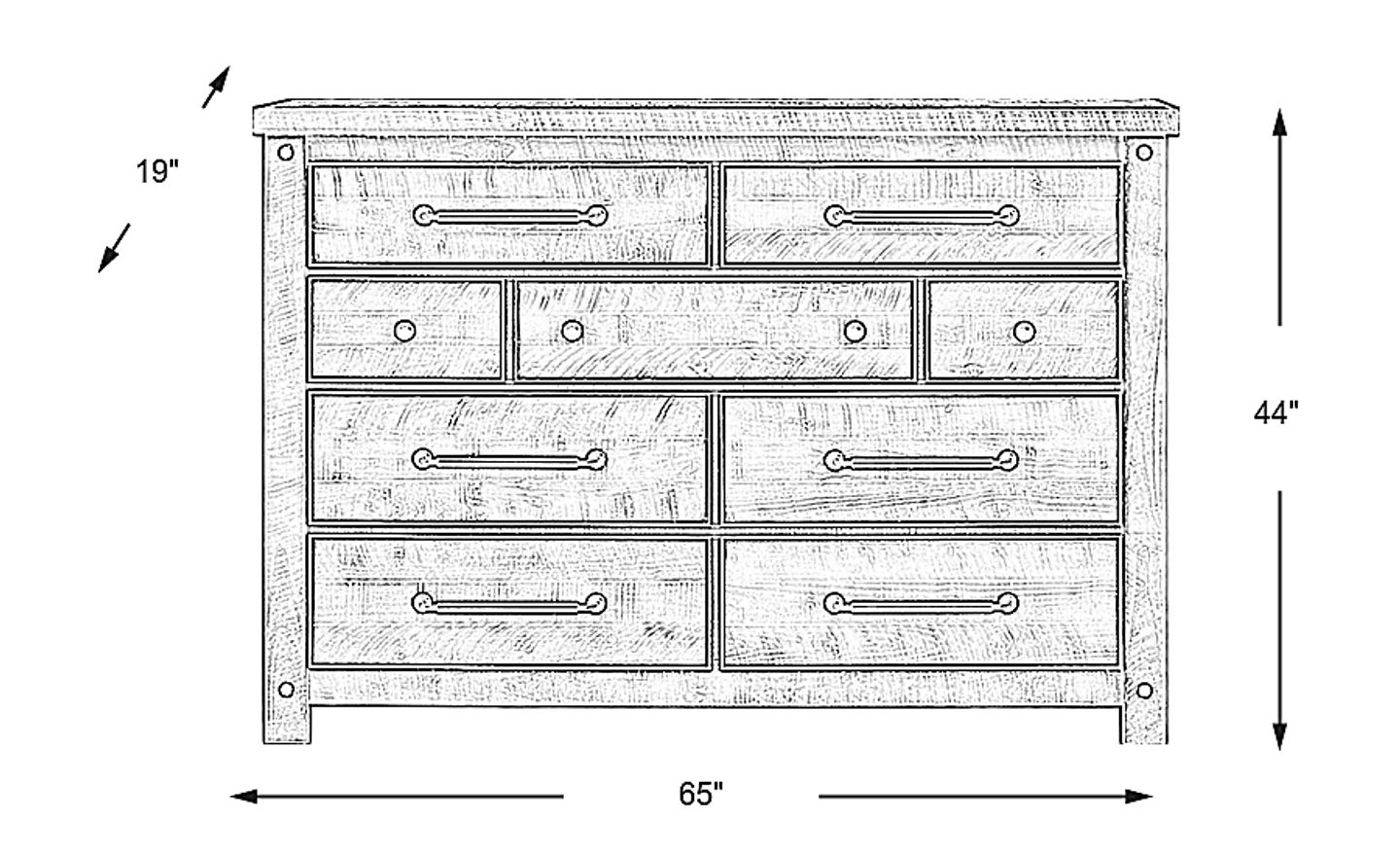 The simple elegance of the Bretten Crossing dresser adds a rustic and refined style. Featuring nine drawers with gray metal pulls and dustproof bottoms, each is crafted with French dovetail joints in the front, English dovetail joints in the back and full extension ball bearing glides to ensure strength and longevity.