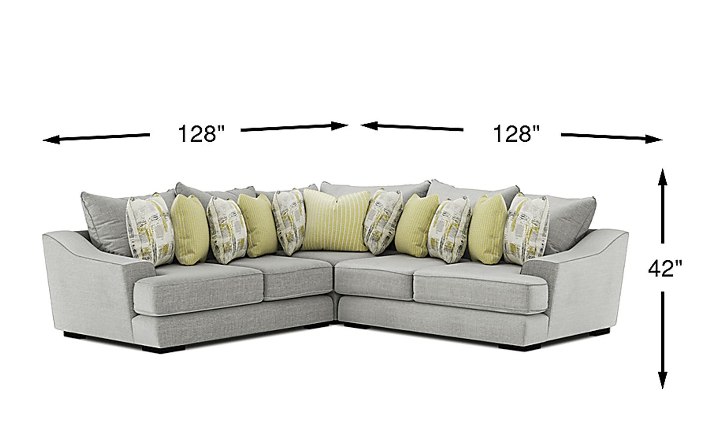 For a comfortable spot to unwind, consider the Briar Crossing sectional. Upholstered in soft gray chenille, this piece features luxurious Feather Blend pillows in an assortment of patterns for a designer-curated look. It features loose seat and back cushions for longevity and a spacious size that allows it to fit up to six people, while its low-profile track arms and welted details exude contemporary style. Upholstery: 100% Polyester.
