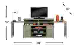 Crafted with clean lines and a minimalist design, the Briar Hill wall unit offers a convenient space-saving solution for the modern age. The 56-inch console sits neatly under a swivel table that rotates outward on each side, instantly creating a home workspace. For abundant storage, the console includes six drawers and an open cubby with two shelves. Caster wheels on both ends of the swivel table ensure a seamless transition from console to desk. Plus, a third level above the table makes the perfect surface area for displaying a television or work of art. This wall unit's stone gray finish emphasizes its contemporary style.