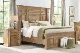 Yes, this bed is an exceptional choice for rooms with high or vaulted ceilings. The headboard stands at an impressive 79 inches, providing a dramatic vertical focal point that helps fill the "dead space" often found in larger suites. The traditional layered framing and intricate molded panels add architectural weight that prevents the furniture from being dwarfed by high walls.
