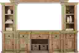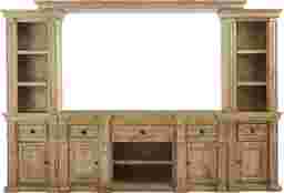 Quiet countryside mornings, the soft glow of light and texture gathering in gentle harmony... these are the hallmarks of Briar Hill, where every detail is richly observed with enduring charm. Rooted in traditional style, this wall unit is finished in a soft natural tone that highlights its framed molding, stepped edges, and pilastered corners. At the center, the 72-inch console features three top drawers and two cabinet doors for hidden storage, while its two center shelves provide spacious display space. Flanking the console sides, each pier offers more space to store and display items with three top shelves, a drawer and cabinet. The bridge top and sturdy plinth base ground the piece, while dark metal knobs add a classic touch.