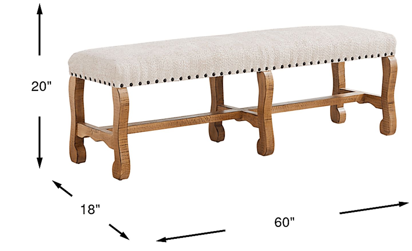 Quiet countryside mornings, the soft glow of light and texture gathering in gentle harmony... these are the hallmarks of Briar Hill, where every detail is richly observed with enduring charm. Rooted in traditional style, this dining bench is upholstered in soft beige fabric and accented with a stylish nailhead trim. The base showcases refined craftsmanship with gracefully carved legs finished in a soft natural tone.