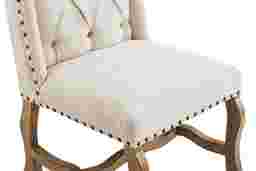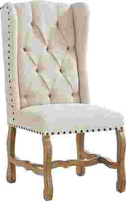 Quiet countryside mornings, the soft glow of light and texture gathering in gentle harmony... these are the hallmarks of Briar Hill, where every detail is richly observed with enduring charm. Rooted in traditional style, this side chair is upholstered in soft beige fabric and accented with a stylish nailhead trim. The high wingback showcases diamond tufting for an elegant touch, while wavy legs finished in a soft natural tone bring a casual ease.