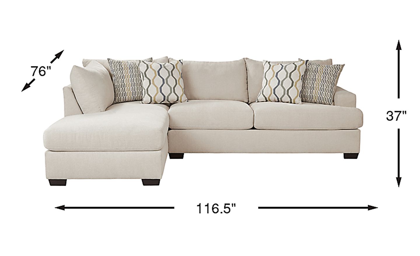 This sectional measures 116.5 inches in width and 76 inches in depth. To ensure a comfortable fit, we recommend measuring your designated area and allowing for 18 to 24 inches of clearance for walkways. Because this is a two-piece set, it offers a more streamlined profile than larger multi-piece configurations, making it easier to place in rooms with defined dimensions.