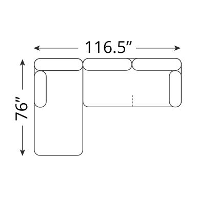 Measuring for a sectional is critical for a balanced room flow. This 2-piece model has an overall footprint of 116"w x 76"d. To accommodate different floor plans, this collection is designed with versatility in mind and is available in both right-facing and left-facing chaise configurations. This allows you to choose the arrangement that best anchors your space or serves as a natural room divider without obstructing pathways.