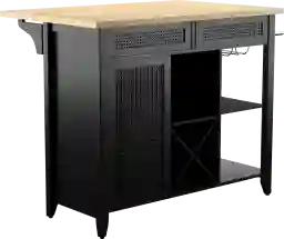 Optimize your entertaining space with this expandable Brickellen kitchen island. Drop-down countertop is perfect for prepping and serving offering a convenient spot to set out drinks and hors doeuvres. Two metal racks organize your stemware while four wine cubbies hold your favorite bottles of Merlot. Serve up storage and prep space where you need it most with this multifunctional island. Customer assembly is required.