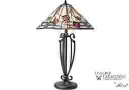 The Bridesburg Tiffany-style table lamp brings the beauty of original stained glass to your home. The shapely form of this antique bronze finished table lamp with hand-cut stained glass shade is accentuated by a double pull chain switch with lovely hanging butterflies. Each of the two sockets takes a 60 Watt maximum Type A bulb.