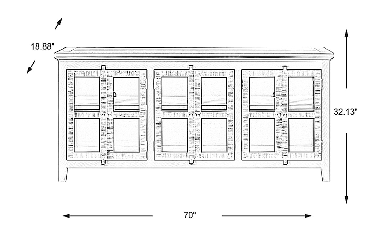 Mixing materials for a bold look with depth and sophistication, the Bridgeport console's visual impact is elevated through its contrasting metal doors against a wooden frame. Contemporary in style and constructed of pine and poplar wood solids, this piece features six glass doors with adjustable shelves to provide ample space for storing and showcasing your décor.
