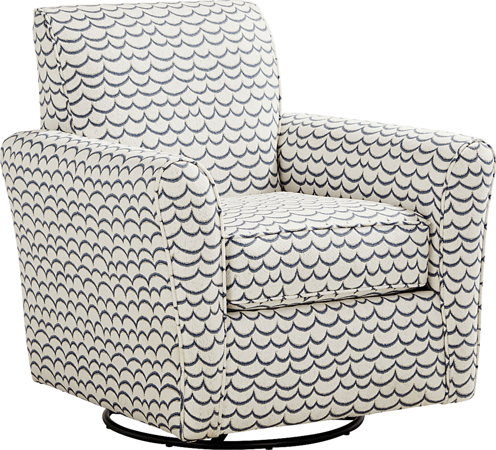 The ease of coastal living melting away life's stresses comes to life in the Brightwater collection's soothing blend of calming hues, flowing lines, and effortless versatility. Transitional in style, this swivel chair is upholstered in soft woven fabric that infuses your space with a light and tranquil ambiance. Its smooth swivel motion invites relaxed movement, while a curved back and padded seat offer supportive comfort. Finished with tailored marine details, it's a versatile accent that brings breezy elegance to any corner of your coastal-inspired living space. Upholstery: 100% Polypropylene