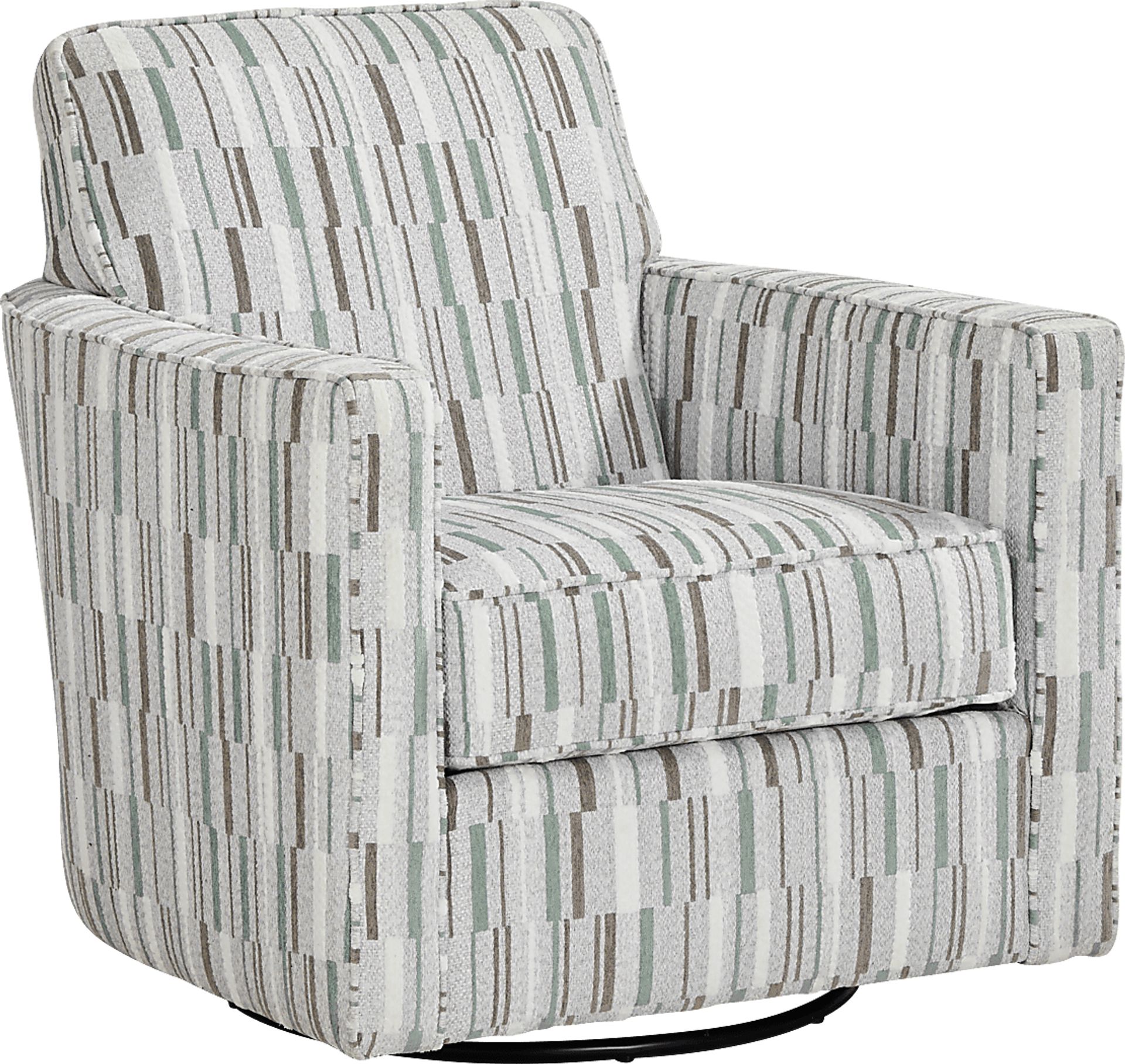 Sophisticated with a sense of warm intimacy, the Brisbane swivel chair's plush comfort and spacious seating is the perfect place to unwind and connect. Contemporary in style, this 360-degree swivel chair features smooth chenille upholstery, artistic design and stylish flair arms for a luxurious feel. 100% Chenille.