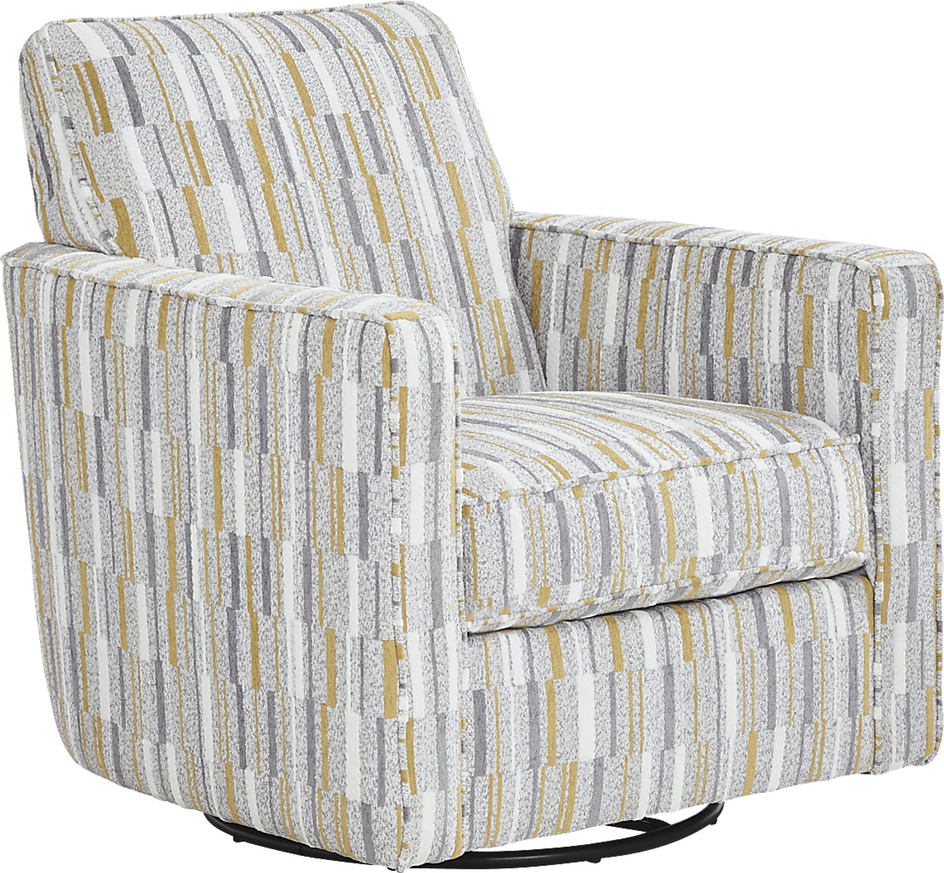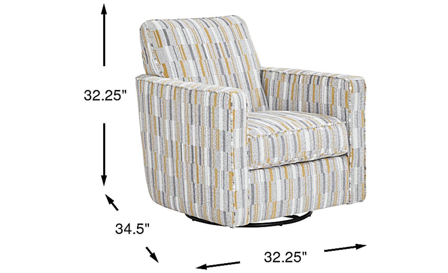 Sophisticated with a sense of warm intimacy, the Brisbane swivel chair's plush comfort and spacious seating is the perfect place to unwind and connect. Contemporary in style, this 360-degree swivel chair features smooth chenille upholstery, artistic design and stylish flair arms for a luxurious feel. 100% Chenille.