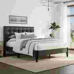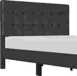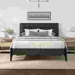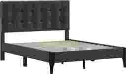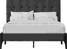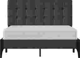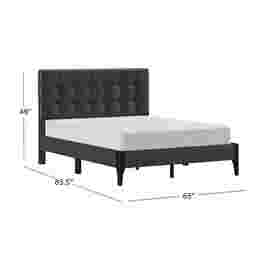 A refreshing take on classic tufting, the Brisea headboard of this contemporary queen platform bed boasts an orderly grid of biscuit tufting that celebrates modern design. Clean lines and minimal details create a sleek aesthetic, further enhanced by the dark gray upholstery. The contoured statement footboard legs, finished in a raven black, create a lovely contrast to this otherwise linear piece. A box spring isn't required. Mattress required; not included. Customer assembly is required.