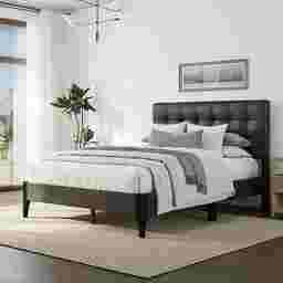 Yes, this bed is exceptionally well-suited for smaller living spaces. With a width of 65 inches and a headboard height of 49 inches, it provides the luxury of a queen-sized sleeping surface while maintaining a streamlined silhouette. The platform design eliminates the added bulk of a box spring, and the tapered raven black legs create open space beneath the frame, which helps a compact room feel more airy and expansive.