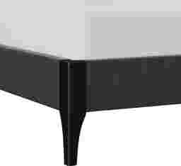 This bed features a robust upholstered frame supported by contoured statement footboard legs finished in raven black. These legs are tapered to provide both high-contrast visual appeal and a secure, stable foundation. The integrated slat system ensures that the weight of the mattress and sleepers is distributed evenly across the frame for long-term durability.