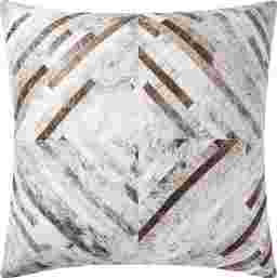 This large faux cowhide Brivas floor pillow with a geometric design is a dramatic accent piece or elegant extra seating for your living room decor. The 36"W x 36"D x 6"H pillow is machine-woven of soft polyester.