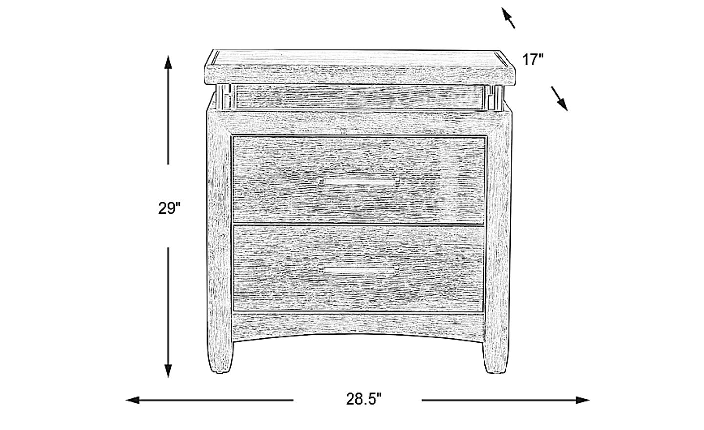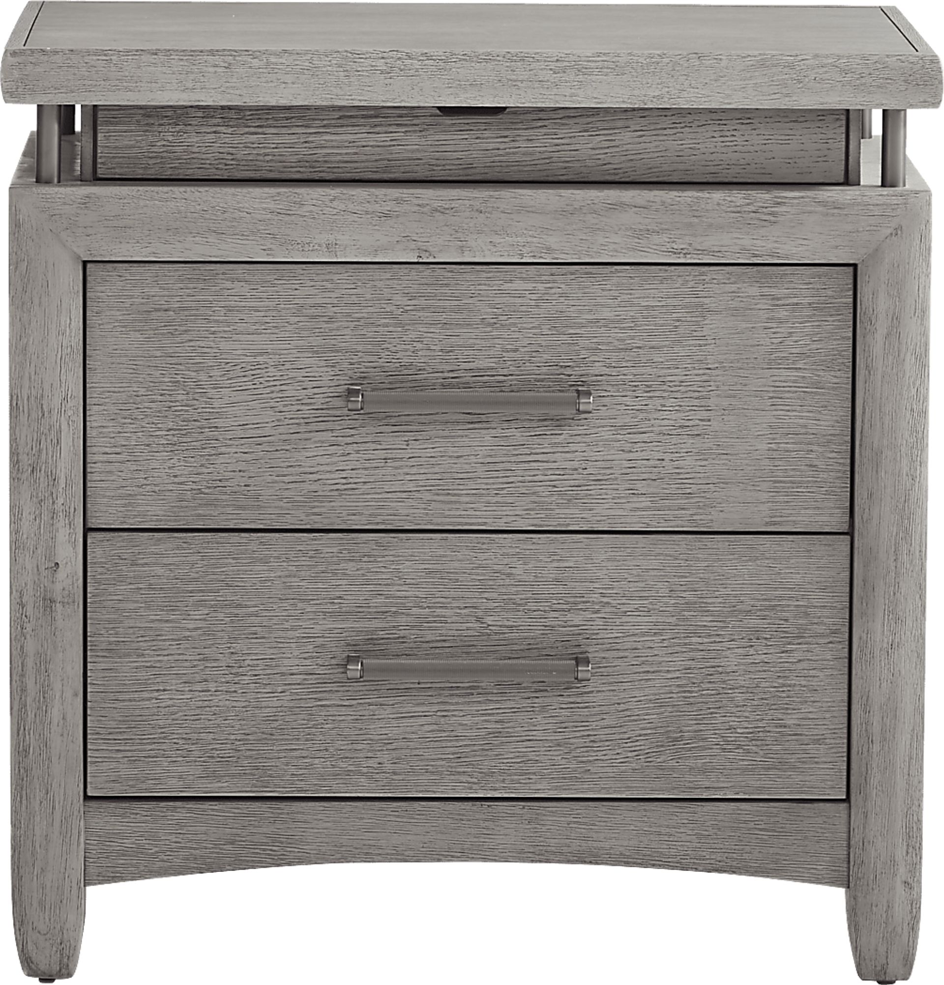 The Broadmore nightstand brings stylish transitional looks to your bedside. Crafted of hardwood solids with oak veneers, this piece comes in a versatile light gray finish. The two drawers have room to store extra clothing, while stunning LED lights illuminate an additional storage space above the first drawer that is perfect for resting reading essentials and more.
