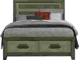 Taking casual cottage styling and adding a rustic twist, the Broadstone bed has a warm look that encourages cozy dreaming. Crafted with solid pine, the headboard features alternating panels of light and dark with a two-tone gray finish for added dimension. Two handy storage drawers in the footboard are accented with oversized hardware, bringing a polished look to your bedroom. Texturing along the trim has a distinguished distressed look. Mattress sold separately. Bed shown is queen size.