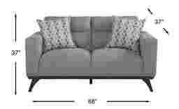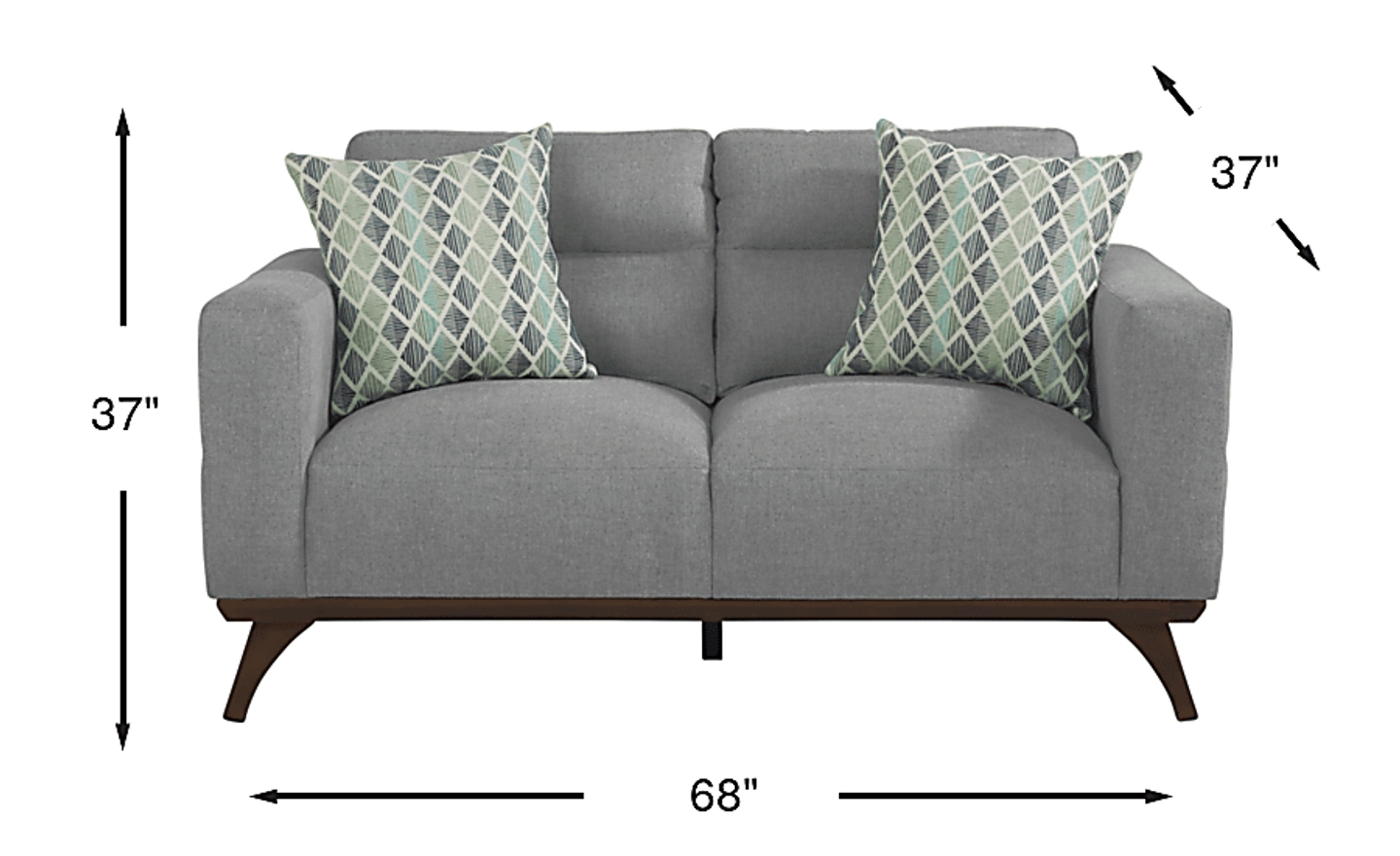 Get comfortable in supreme style with the contemporary style of the Broadview Park loveseat. Sleek track arms combine with the beautiful gray woven upholstery. An exposed wood base adds a beautiful brown finish for a bit of contrast. Angled legs and channeling on the back cushions and outside arms are the perfect finishing touches on this piece. Upholstery: 100% Polyester.