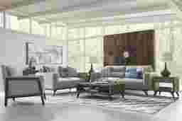 Style your living room with the Broadview Park collection for a wonderful contemporary look. This room features beautiful sage woven upholstery that combines with track arms for a sleek look. Channel detail on the back cushions and outside arms of the sofa and loveseat add a tailored touch that truly stands out. Each piece in this room also features and exposed wood base in a brown finish as well as angled legs. This room comes complete with a sofa, loveseat and accent chair. Upholstery: 100% Polyester. Cleaning Instructions: Use water based cleaning agents or foam. Small accent pillow not included.