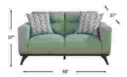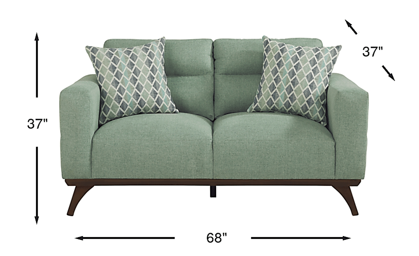 Get comfortable in supreme style with the contemporary style of the Broadview Park loveseat. Sleek track arms combine with the beautiful sage woven upholstery. An exposed wood base adds a beautiful brown finish for a bit of contrast. Angled legs and channeling on the back cushions and outside arms are the perfect finishing touches on this piece. Upholstery: 100% Polyester.