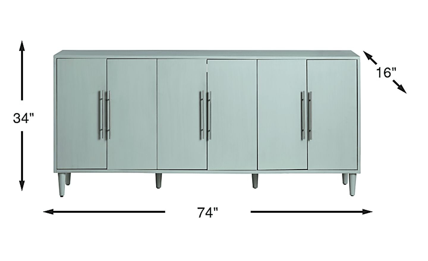 Sleek, simple and full of style possibilities, the Brockway credenza perfectly blends form and function for a versatile piece that fits beautifully in your home. Soft painted sage green finish adds a soothing touch, while bold iron hardware brings contrast and character. With six doors and ample interior storage, it's a smart solution for dining rooms, entryways, or anywhere you need a little extra organization.