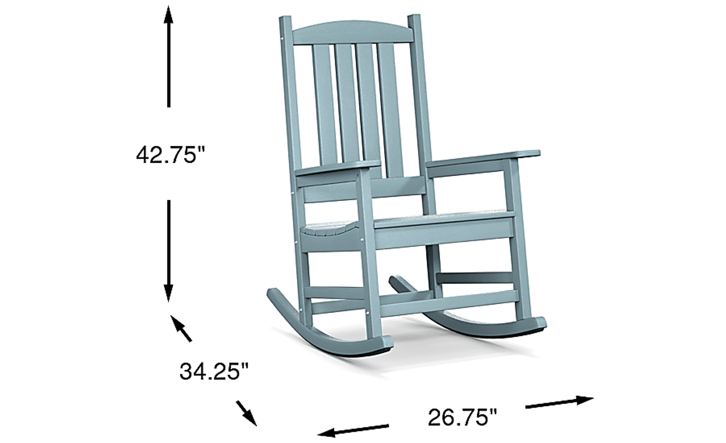 With a width of 26.75 inches and a depth of 34.25 inches, this rocker is well-suited for most standard porches. However, to ensure a smooth and safe rocking motion, we recommend allowing for at least 18 to 24 inches of clearance both in front of and behind the chair. This prevents the "rocker legs" from making contact with railings or walls during use.