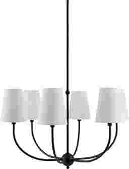 Illuminate your space with the Brodrik Black Chandelier, a stunning blend of updated traditional style that brings both elegance and charm to any room. Crafted with an iron fixture and complemented by a soft cotton shade, this chandelier offers a timeless aesthetic that seamlessly fits into modern and classic decor alike. It's designed to be the centerpiece of your dining area or living room, casting a warm glow that invites relaxation and conversation. Elevate your home's ambiance effortlessly with this chandelier's sophisticated allure. Professional installation by an electrician is recommended.