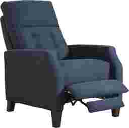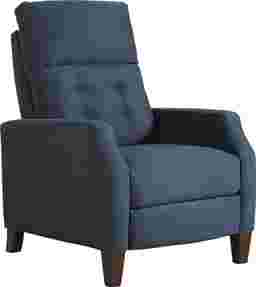 Sophisticated contemporary design with a sleek look, the Bromfield recliner adds stylish comfort for any living space. Upholstered in plush sapphire colored MicroFiber fabric, this cozy recliner features a tufted back cushion and cut-back arms for a clean, modern take on the classic armchair. Pushback reclining capabilities add an extra element of comfort. Upholstery:100% Polyester