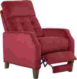 Sophisticated contemporary design with a sleek look, the Bromfield recliner adds stylish comfort to any living space. Upholstered in plush scarlet fabric, this cozy recliner features a tufted back cushion and cut-back arms for a clean, modern take on the classic armchair. Pushback reclining capabilities add an extra element of comfort. 100% Polyester