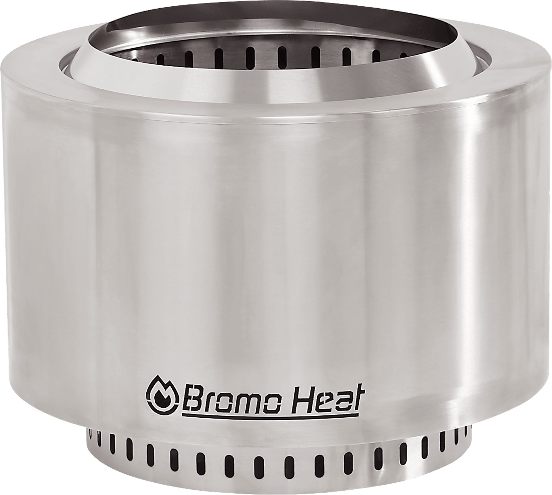 The unique allure of experiencing each season in the cozy confines of your own outdoor oasis only gets sweeter with the versatile Bromo Heat smokeless fire pit at the center of every outdoor occasion. This sleek, food-grade stainless steel accent offers heat, light, and cooking functionality with a full suite of accessories included. A pair of fire tongs make it a breeze to load in your fuel, while a removable wind guard protects against gusts. The carrying case doubles as a firewood tote, so the woodpile is never too far away. Vents below provide ample airflow around the convenient ash pan. A pair of stacking grill racks are the perfect final touch, letting you cook up all kinds of tasty treats while enjoying your time around the fire.