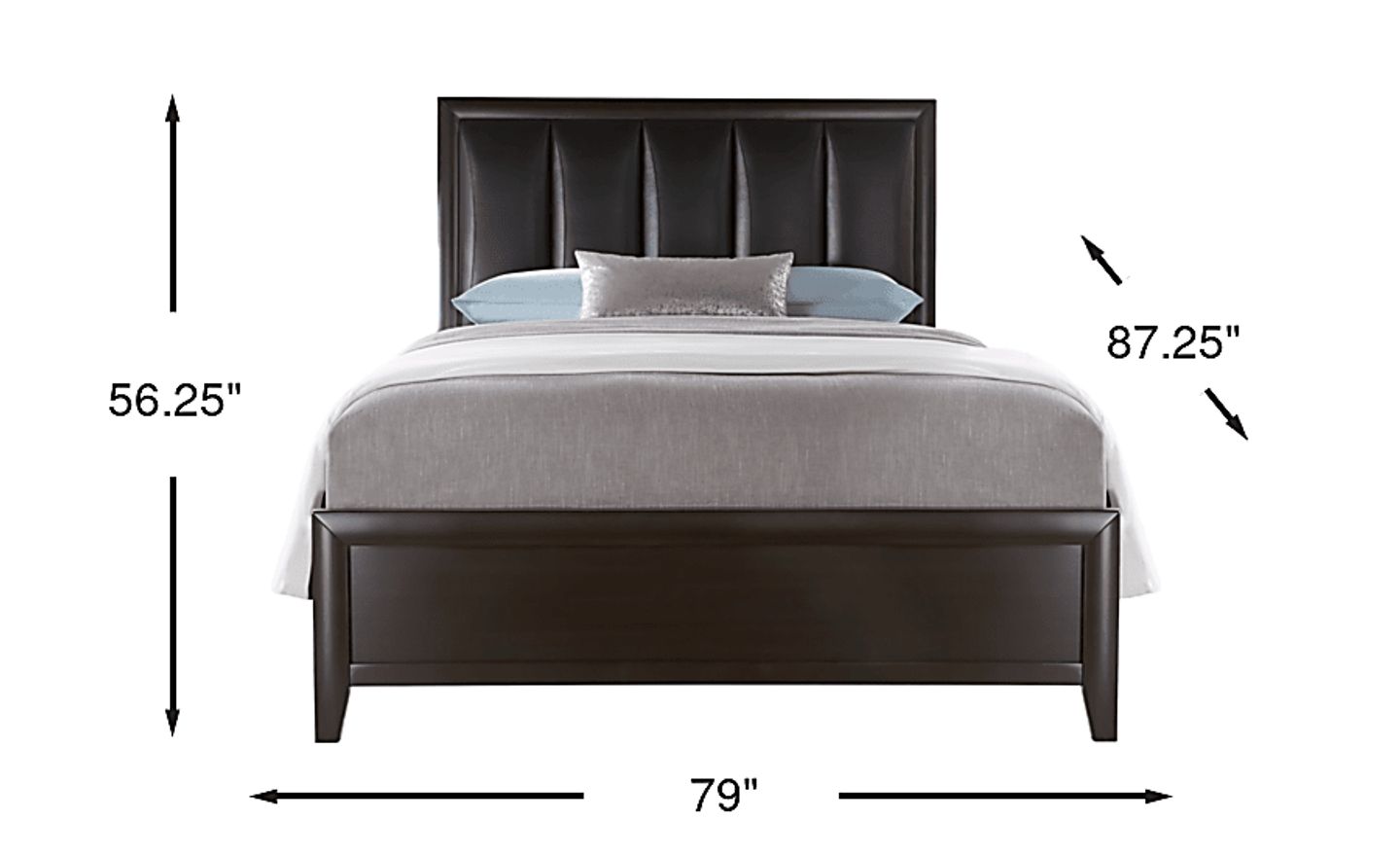 Take your bedroom from boring to beautiful with the impressive Brookeville bed. The bed features a channeled padded upholstered headboard and panel footboard. Quality construction is achieved with poplar solids and birch veneers in a rich dark chocolate finish. This is a truly chic bed that can be enjoyed for years to come. Reversible rails allow you to raise or lower the height of your mattress. Mattress and foundation (if required) sold separately. Bed shown is queen size.