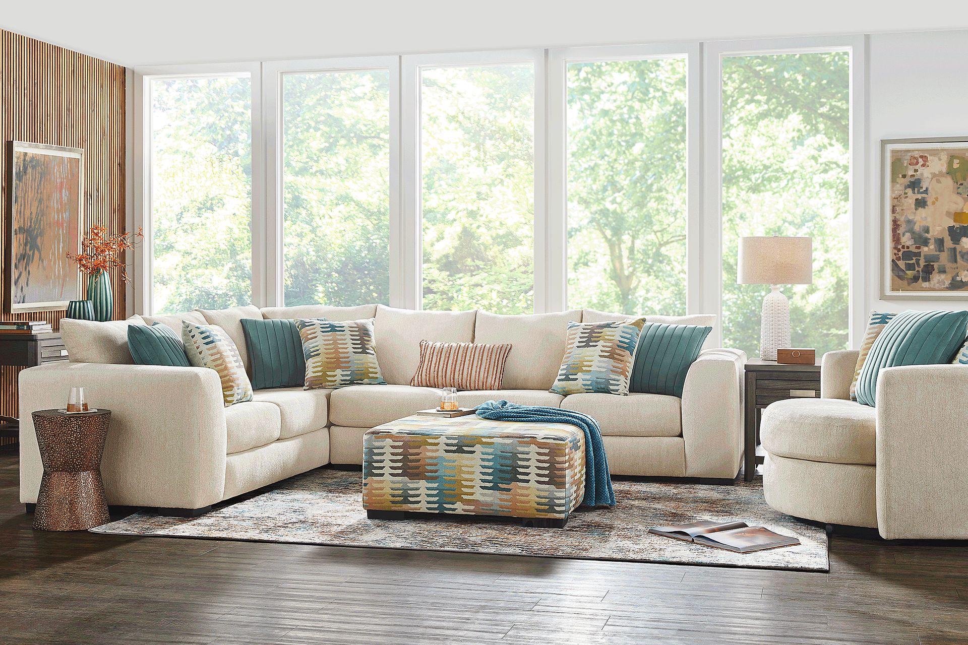 With impressive dimensions of 128"w x 100"d, this sectional is an excellent choice for large living areas or open-concept floor plans. In these expansive spaces, the sectional’s scale allows it to act as a sophisticated room divider, defining the seating area without the need for additional walls. For the best fit, we recommend leaving at least 18 to 24 inches of clearance around the perimeter to ensure comfortable walkways and easy access to other furniture pieces.