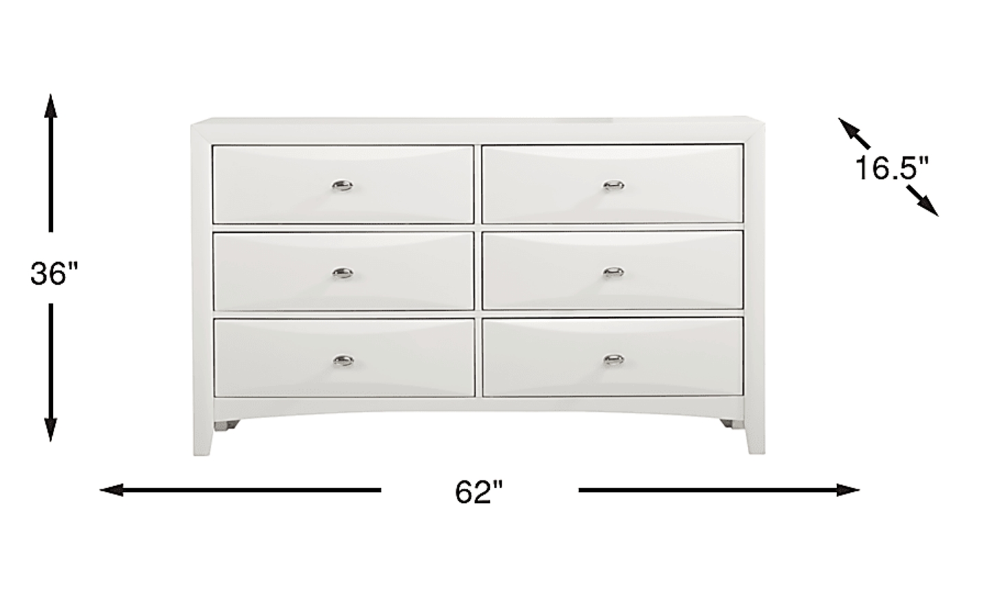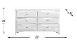 Generous storage and the beauty of beveled drawers combine to create the Brookeville dresser. Each of the six roomy drawer is assembled with French and English dovetail construction and embellished with silver finished pulls that complement the white finish. The bottom drawers are dust proofed to protect stored items from up drafting dust. The dresser is quality crafted of poplar solids and birch veneers.