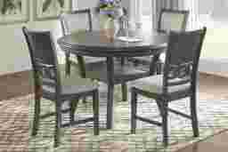 Designed with distinctive features for optimum versatility, the Brookgate dining table is a beautiful choice for your dining area. Crafted with mango and wood solids and mindy veneers in a gray finish, a lower shelf in the base is a great place for storing a few handy or favorite items nearby.
